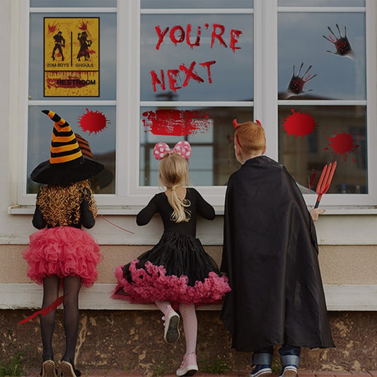 "Hauntingly Horrific: Bloody Handprint Halloween Stickers"
